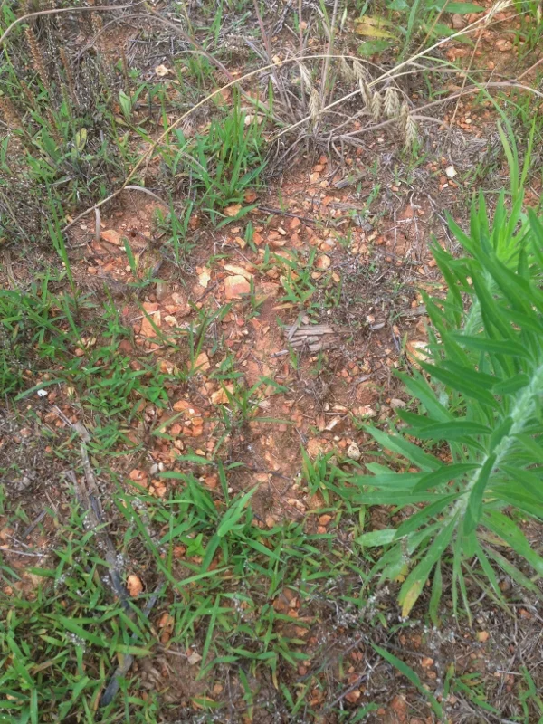The line was put down just over 12 hours prior to track. The line was laid in 81 degrees temperature. The entire line was in a fallow field, intersected by a wood line. The ground was like concrete, and did not take any imprint from the hooves. The line was made using boar hooves (3rd use, but adjusted from last track for better contact). 3/4 oz of deer blood was used in the 450 yard line. 2 deer were jumped from their beds when laying the line, and the line was purposely placed over the area where the deer were bedded and exited the field. On the morning of the track, the conditions were slightly cooler at 75 degrees. No dew or moisture had developed on the grass overnight. A 10 mph SE wind predominated. Here's a look at the condition of the ground.