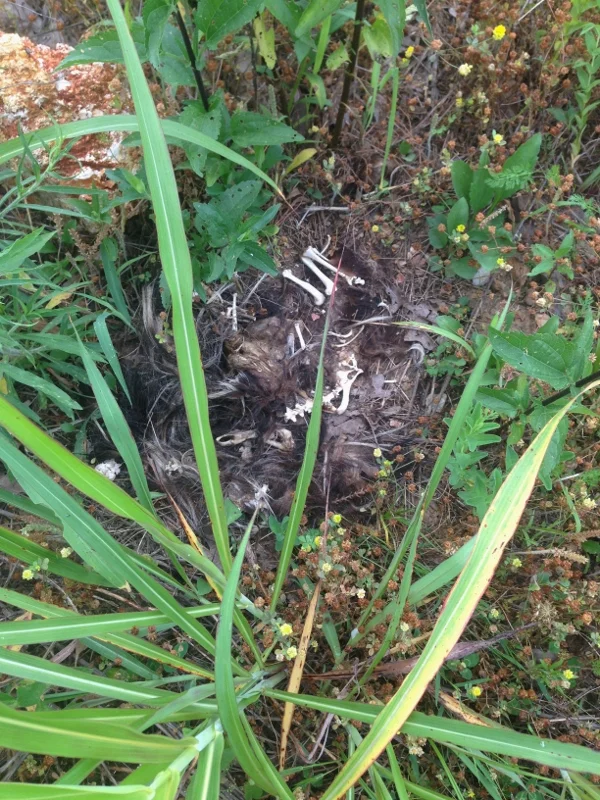 At point 3, Layla made a hard right turn back towards the line. The wind virtually coming from due South at that point. She hit the line, and showed recognition, but continue tracking straight South towards the wood line. I was a little frustrated at first, but let her track on without a word. As we got closer to the wood line, I could smell a dead animal, and knew what had gotten her attention. She worked her way along the edge, and circled slightly until she brought me to the culprit, a dead possum.